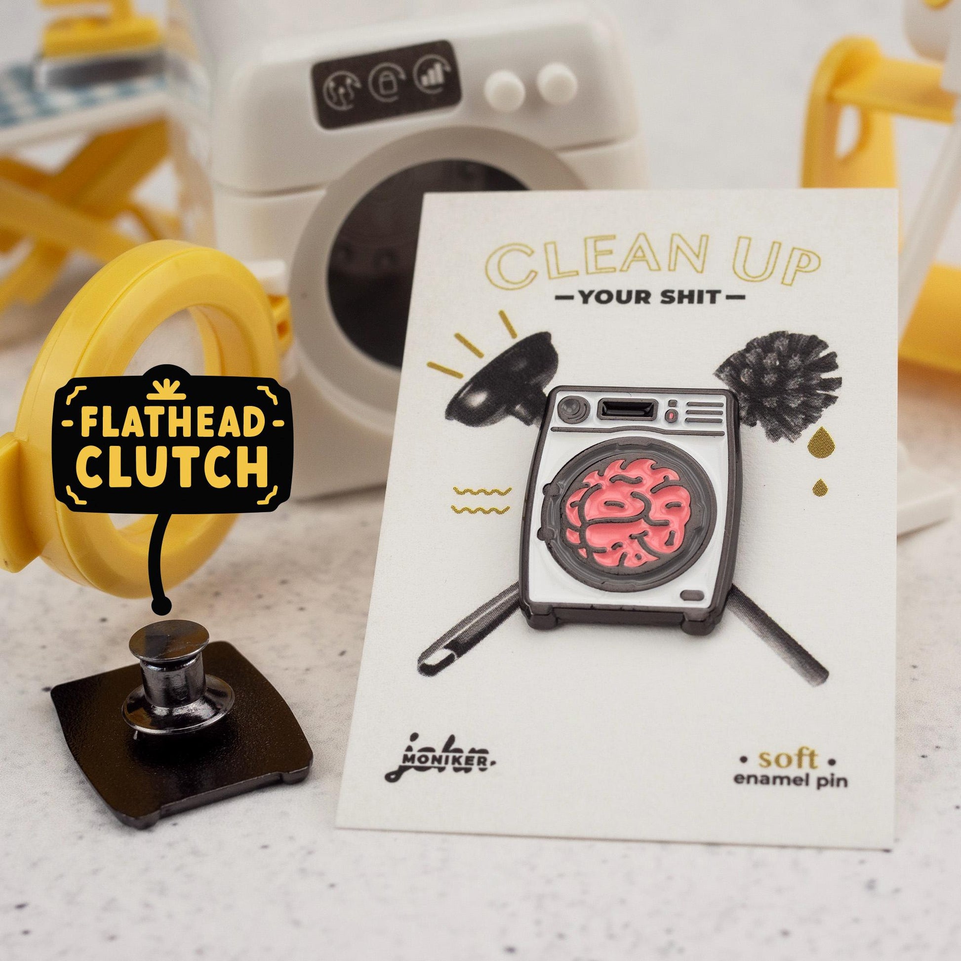 Keep your thoughts fresh and bright with our Brainwash Enamel Pin! Never forget to do laundry again with this handy r...