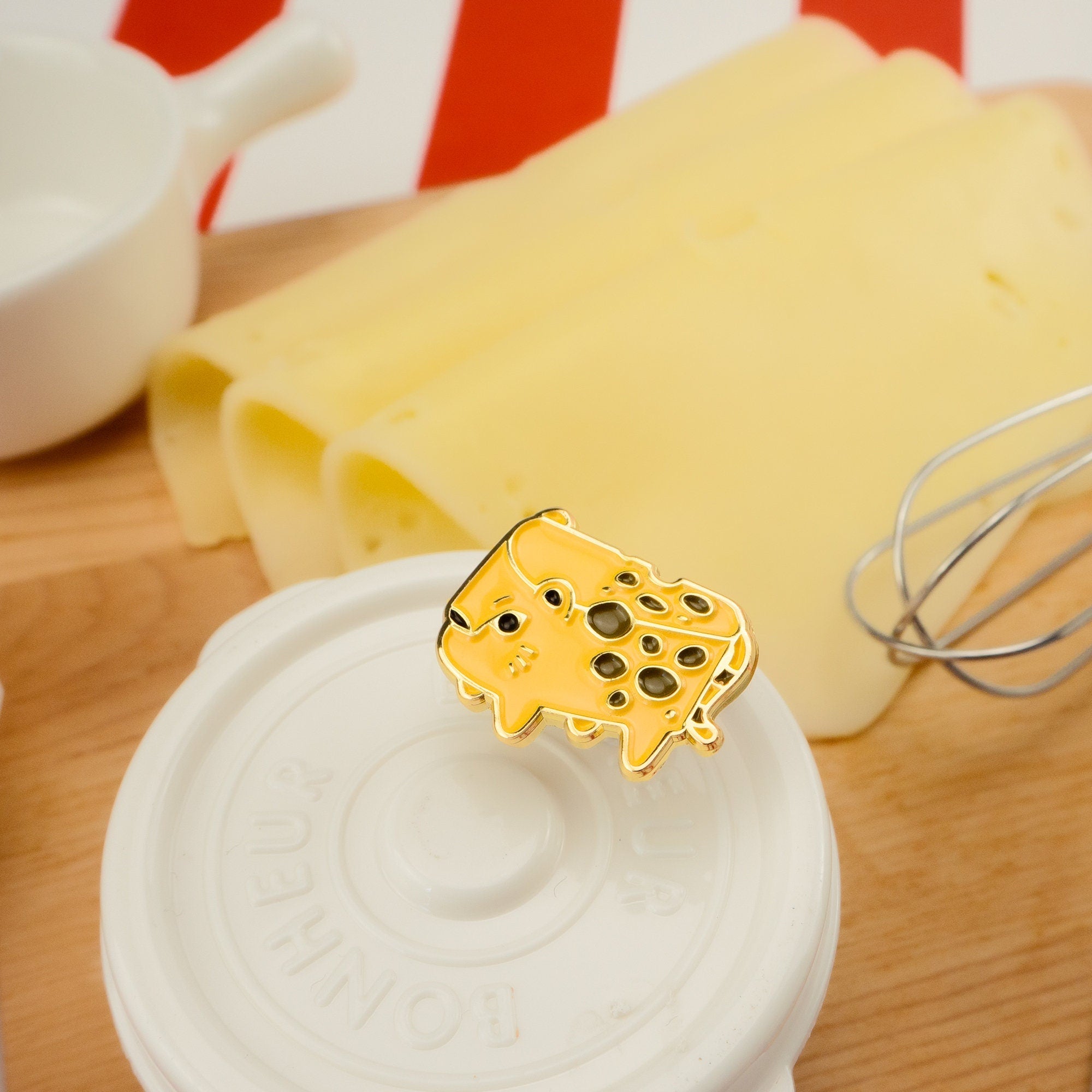 Show your love for all things Cheesy with this Cheetah Enamel Pin! With a distinctive wedge shaped head and brown spots, Cheetah Cheese are one of the fastest animals on the charcuterie board!