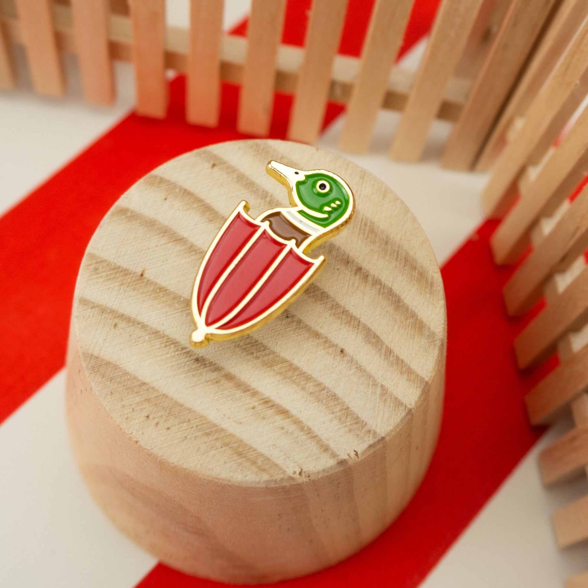 You never know when rain will just spring up on ya! Don't let the rainy days get you down, stay dry in style with this adorable duck umbrella enamel pin! Works well in both rain or shine!